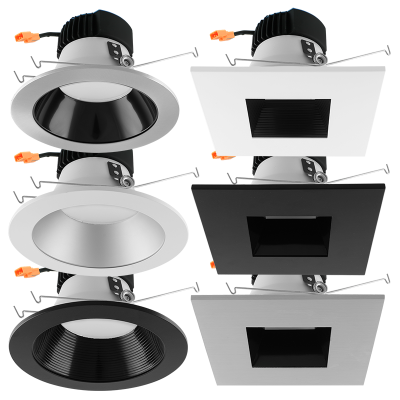 • Interchangeable baffle, reflector, and trim ring in round or square are designed for convenient finish selection or replacement.